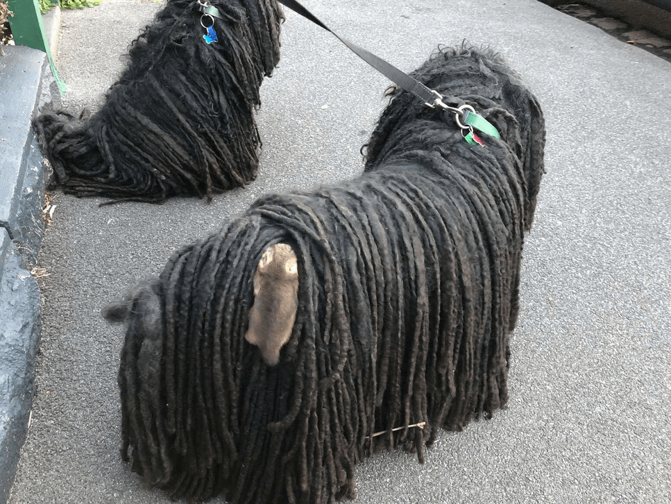 A woman was out walking her two Puli dogs when she looked over and saw something very surprising. One of the dogs had a baby possum attached to it! The possum looked quite comfortable nestled in the dog’s fur and even more surprisingly, the dog didn’t seem to mind in the slightest. Normally these two animals don’t get along.
