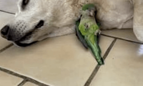 Dog Finds Injured Parrot In Need Of A Friend And Decides To Adopt Him