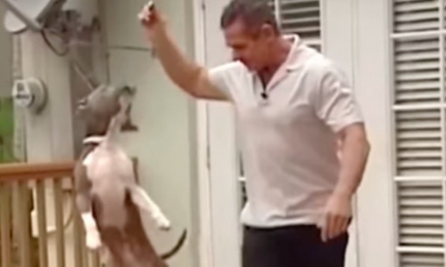 When the man arrived at the shelter, the dog immediately recognized his owner.