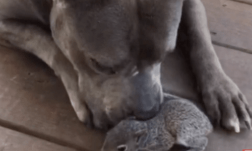 Pit Bull Happily Adopts Orphaned Baby Squirrel To Be The Animal’s Mom